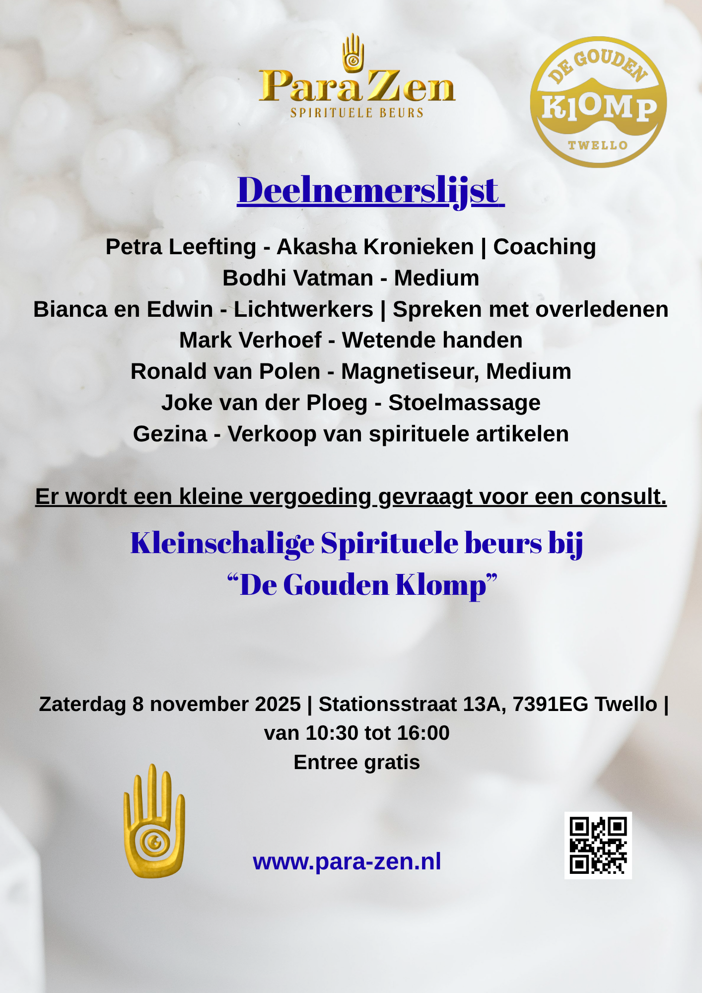 Bij ParaZen komen licht, energie en bewustwording samen. Ontmoet ervaren Lichtwerkers, Nieuwetijds- en Kindercoaches, Mediums, Paragnosten, Magnetiseurs, Fotolezers, Ankh-behandelaars, en vele anderen.